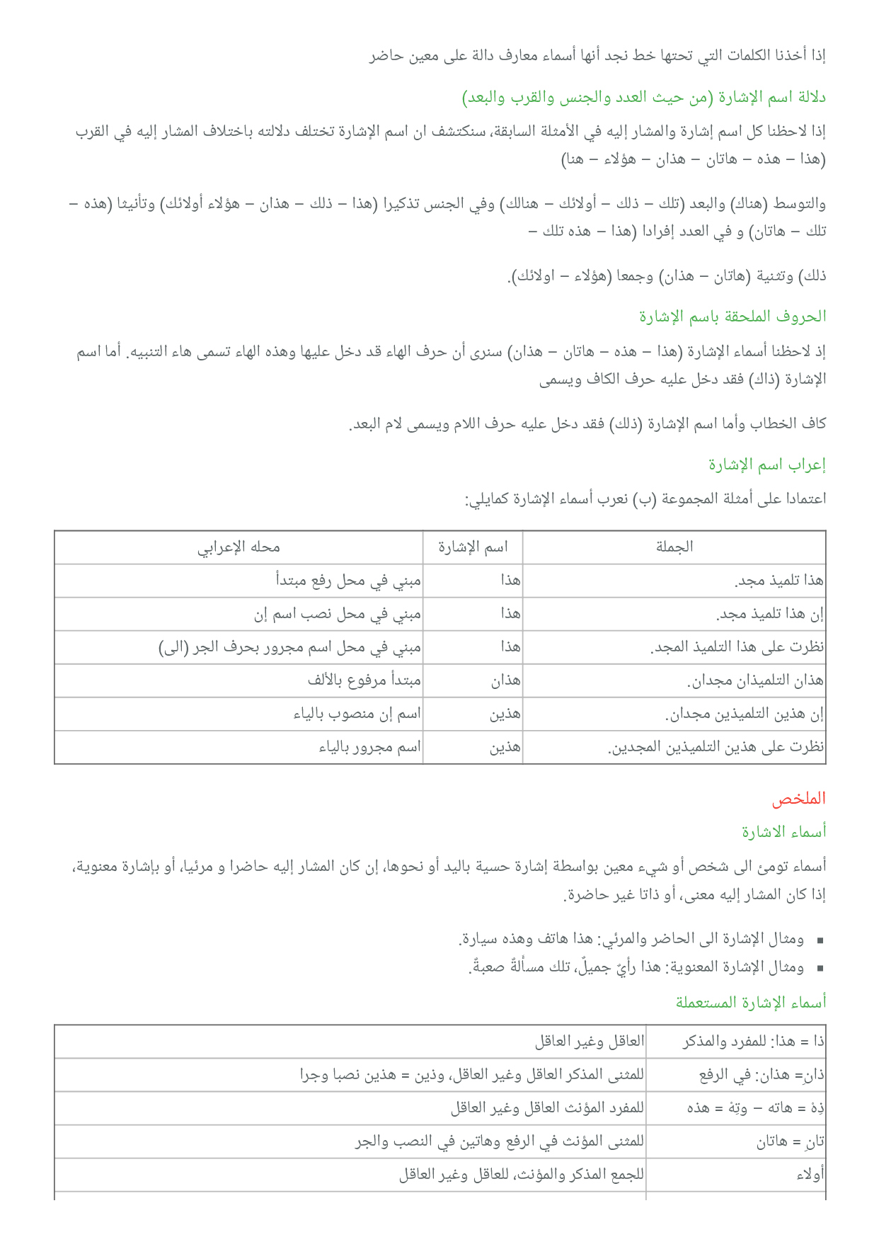 اسماء الاشارة موقع قواعد وأساسي ات الل غة العربي ة للمرحلة الابتدائي ة وفوق الإبتدائي ة