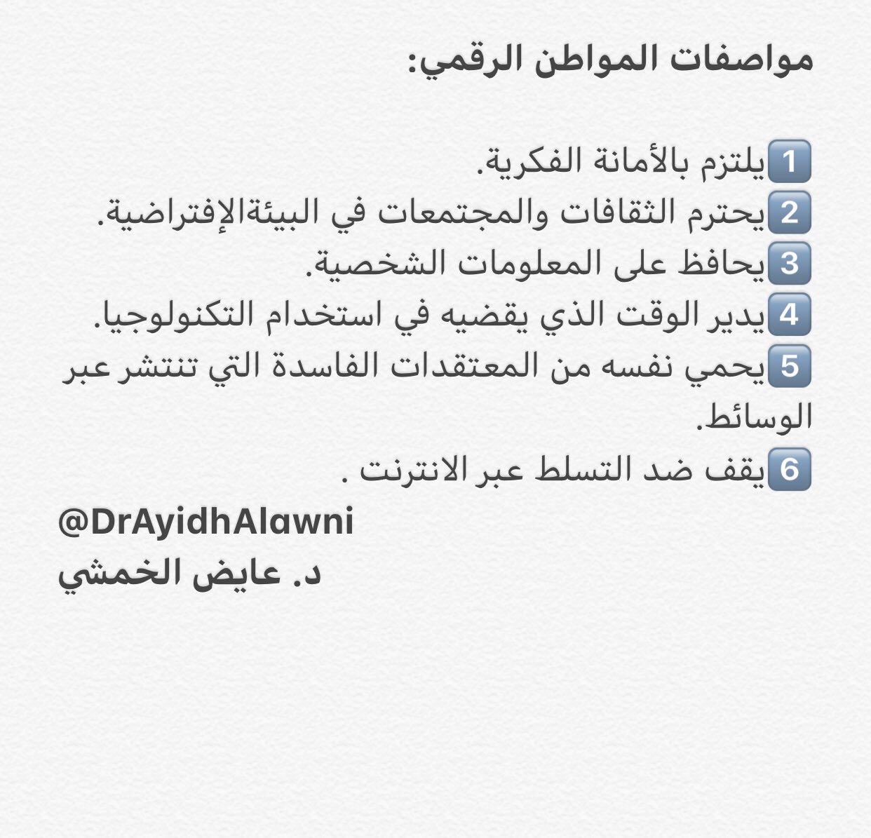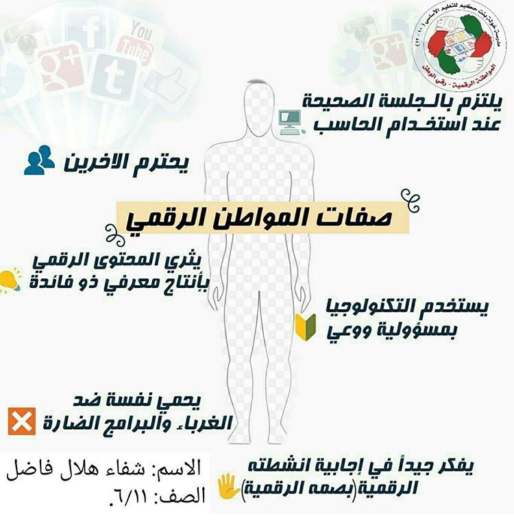 المواطن الرقمي. وتعرف أيضا بأنها القدرة على المشاركة فى المجتمع عبر شبكة الإنترنت كما أن المواطن الرقمي هو المواطن الذي يستخدم الإنترنت بشكل منتظم وفعال. الوعي بعدم مشاركة المحتوى الرقمي الذي يحمل حقوق طبع ونشر مع الآخرين. يعد المجتمع الرقمي كغيره من أنواع المجتمعات التي تفرض على المواطن فيها ضرورة الإلتزام بالقواعد والآداب والسلوكيات الملائمة فيها بحيث يتحقق الاندماج بين الأفراد واختفاء المشكلات تمام ا. يغطي المواطن الرقمي مواضيع متعددة من ضمنها سياسات الحجب حرية الإعلام قطاع تنمية تكنولوجيا الاتصالات والمعلومات الرقابة والمواضيع الأخرى المتعلقة بحقوق الإنسان والتكنولوجيا.