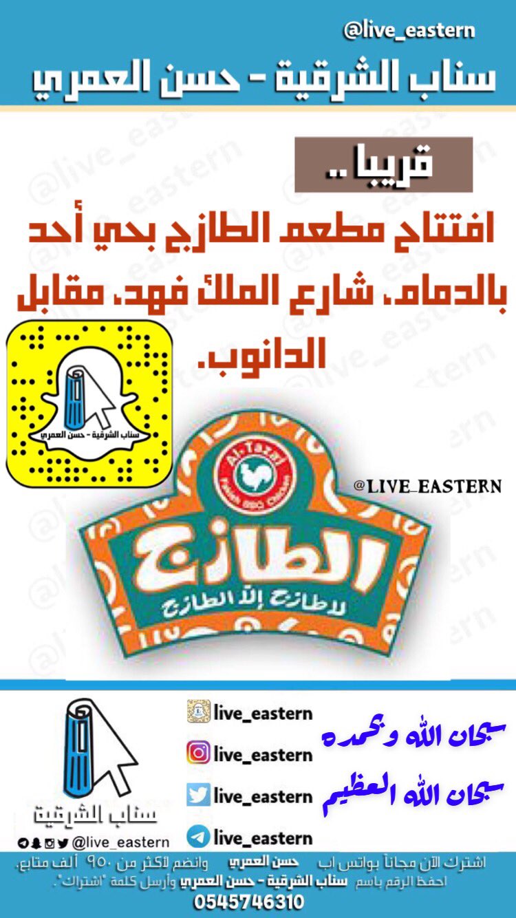 سناب الشرقية حسن العمري On Twitter قريبا افتتاح مطعم الطازج بحي أحد بالدمام شارع الملك فهد مقابل الدانوب الطازج مطعم الطازج الدمام سناب الشرقية حسن العمري حي احد Https T Co Opi49jfc0b