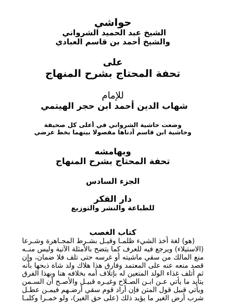 تحفة المحتاج بشرح المنهاج pdf download. حواشي تحفة المنهاج بشرح المنهاج. تحتوي خزانة الكتب على أمهات كتب العلوم الشرعية بفروعها المختلفة والتي تعد رافدا مهما للباحثين المختصين وغير المختصين من زوار الموقع مما يؤدي إلى نشر الوعي الديني لدى المسلمين وتعميق انتمائهم للإسلام وفهم قضاياه. 79 809 kb جامعة دمشق المكتبة الالكترونية كلية الحقوق العلوم التربية الهندسة المدنية الصيدلة الهندسة الزراعية الفنون الجميلة العلوم السياسية. شرواني عبد الحميد ابن قاسم العبادي احمد approximately 1585ابن حجر الهيثمي احمد بن محمد approximately 1503 approximately 1566.
