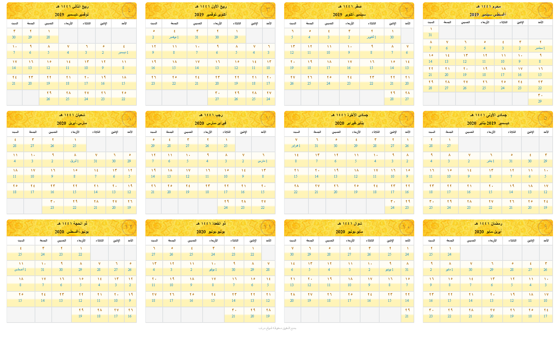التقويم الهجري 1441 في السعودية ومصر والدول العربية بيان تقويم أم القرى وبداية رأس
