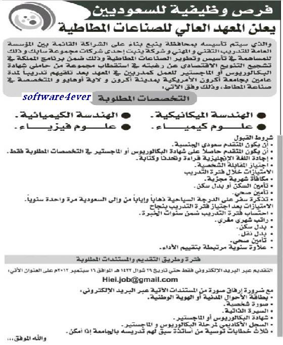 وظائف وفرص عمل شاغرة فى المملكة العربية السعودية وظائف جريدة الرياض 5 9 2012 18 شوال 1433 وظائف شاغرة فى المعهد العالى للصناعات المطاطية وظائف فندق نوفوتيل العنود وفندق ايبيس الرياض