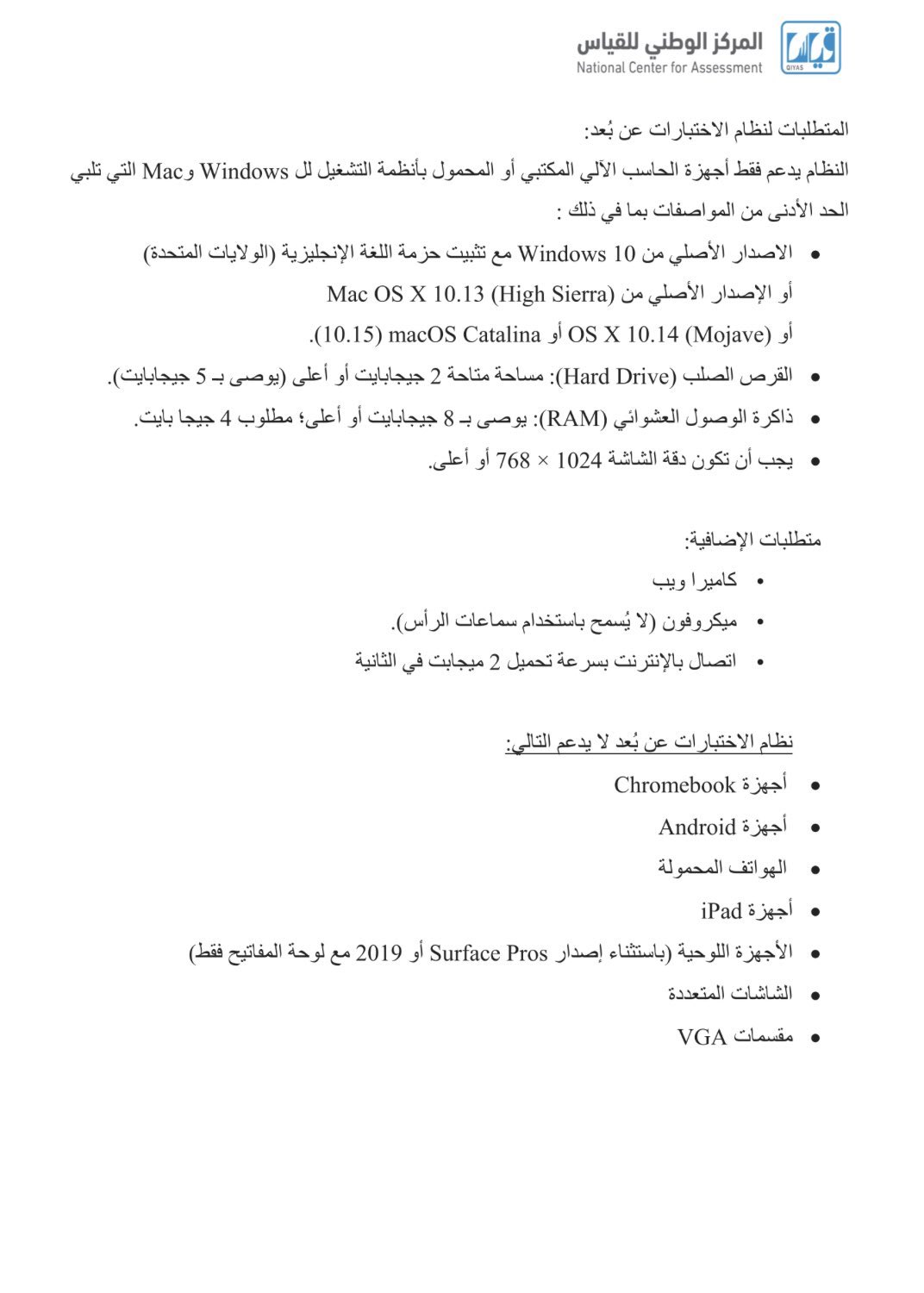 منارة قدرات ثانوي On Twitter مواصفات الجهاز المطلوبه لاداء اختبار التحصيلي من لا يتوفر لديه الاب توب يمكنه اداء الاختبار في مراكز قياس