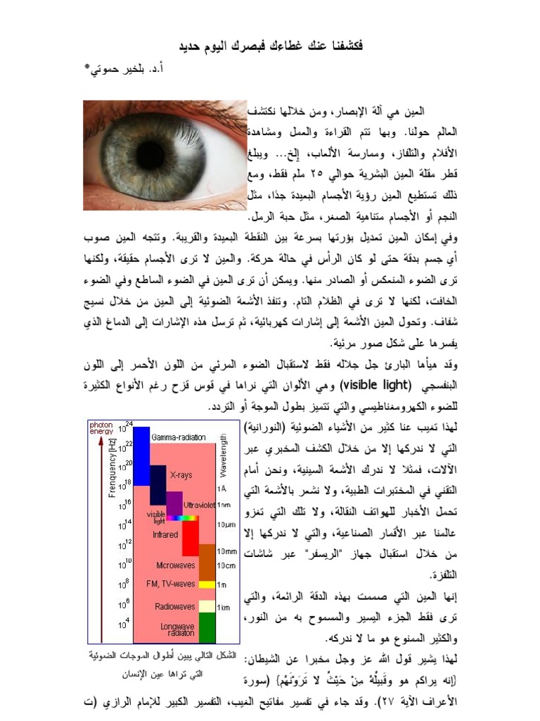 فكشفنا عنك غطاءك فبصرك اليوم حديد بقلم الإعجاز العلمي في القرآن الكريم والسنة المحمدية Facebook