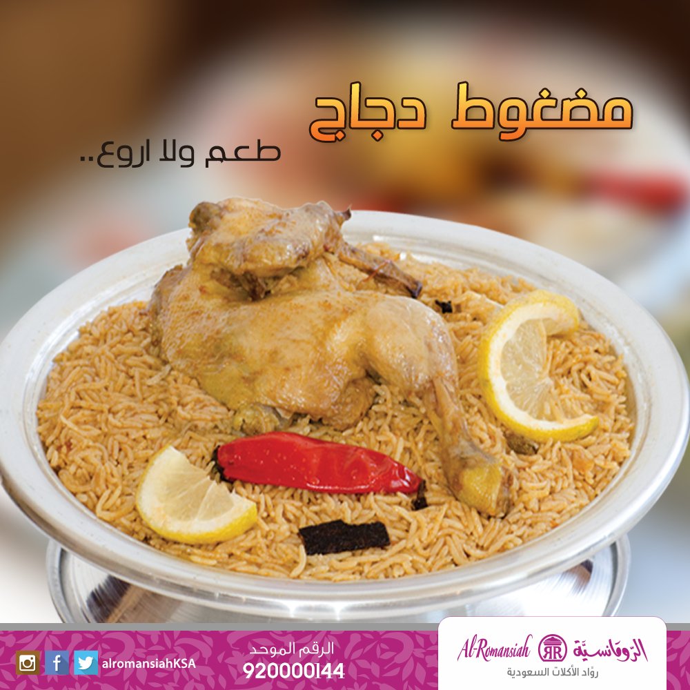 30 أبريل 2015 18 38 اليكي اليوم وصفة مميزة من المطبخ السعودي وهي مضغوط دجاج سعودي بمكوناتها الغنية والمغذية وطريقتها السهلة ستزين مائدتك. قطع دجاج طازج متبل أرز بالخضارمطبوخ بطريقة الرومانسية الفريدة بالإضافة إلى طحينة و كشنة مكرملة. استمتع بأشهى المأكولات والعروض الحصرية مع خدمة التوصيل الى جميع مناطق السعودية. حبة دجاج شواية أو مدفون مع الأرز الأحمر أو الرز المندي.