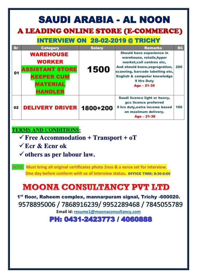 Recruiting For Leading E Commerce Company Saudi Arabia Client Interview At Chennai On 20 06 2019 Youtube