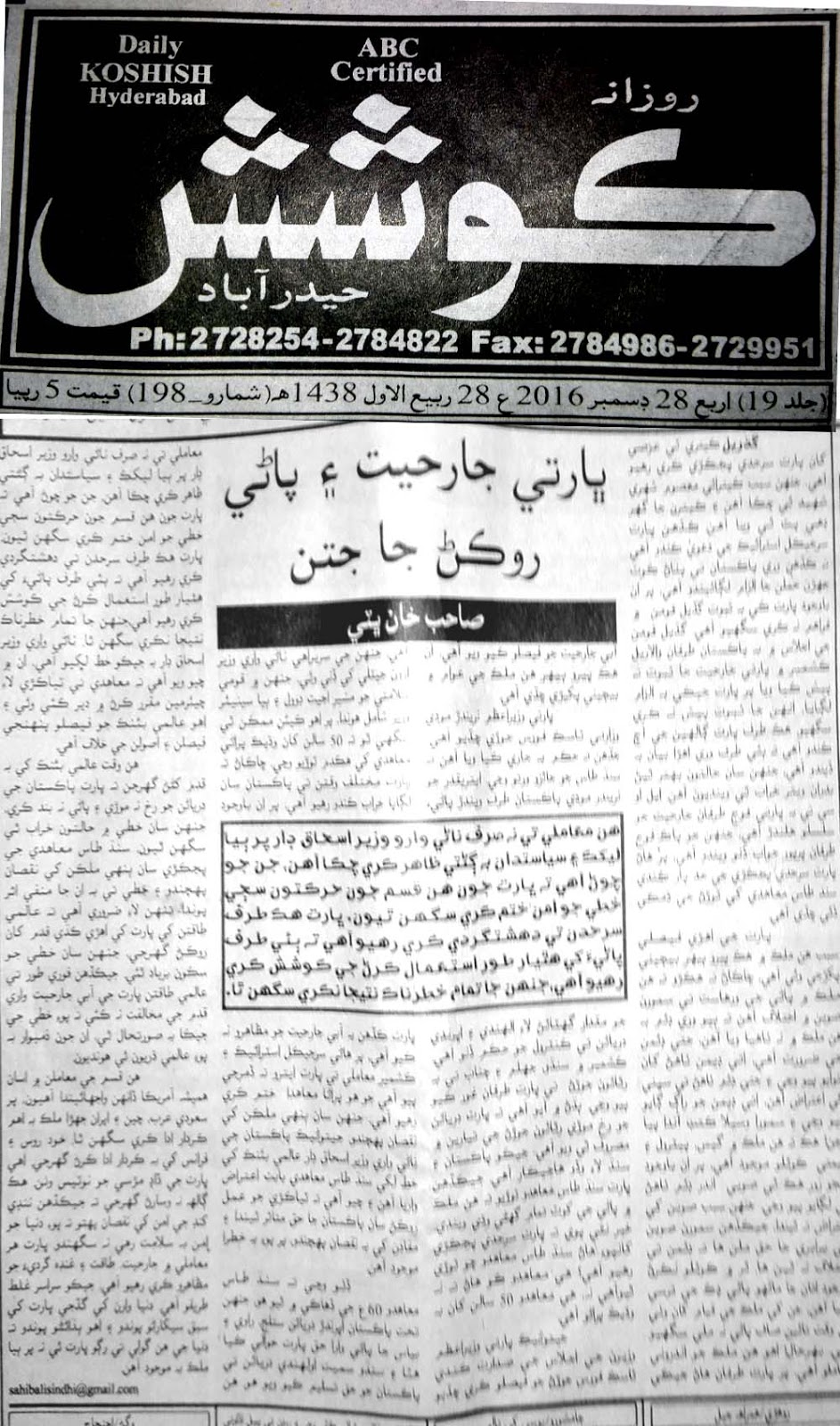 ا ڄوڪي ڪوشش حاضر آهي پڙهڻ شيئر ڪرڻ The Daily Koshish Facebook