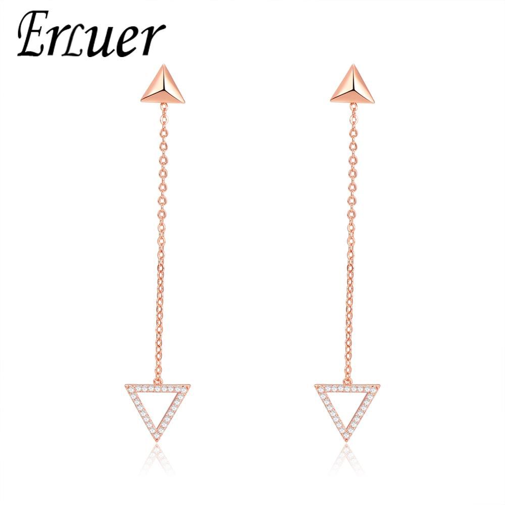 2020 Erluer J Korea Long Drop Earrings For Women Girls Triangle Shape Charm Crystal Zircon Pendant Dangle Silver Rose Gold Earring Party From Dilanshipin 3 02 Dhgate Com